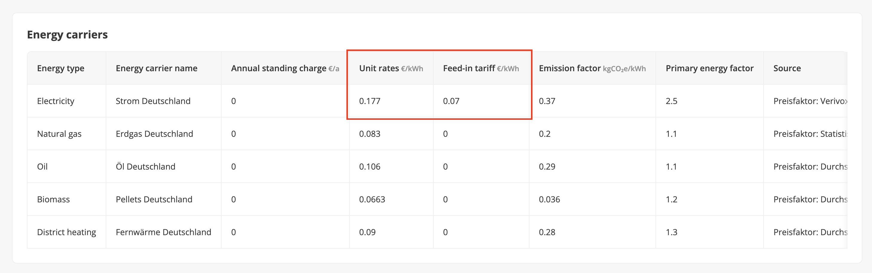 | Feed in tariff (LC/kWh) | Feed-in tariff for electricity exported to the public grid. This can be set in the energy carrier section of the “Asset edit” modal. | Defines income from PV exports to the grid. |